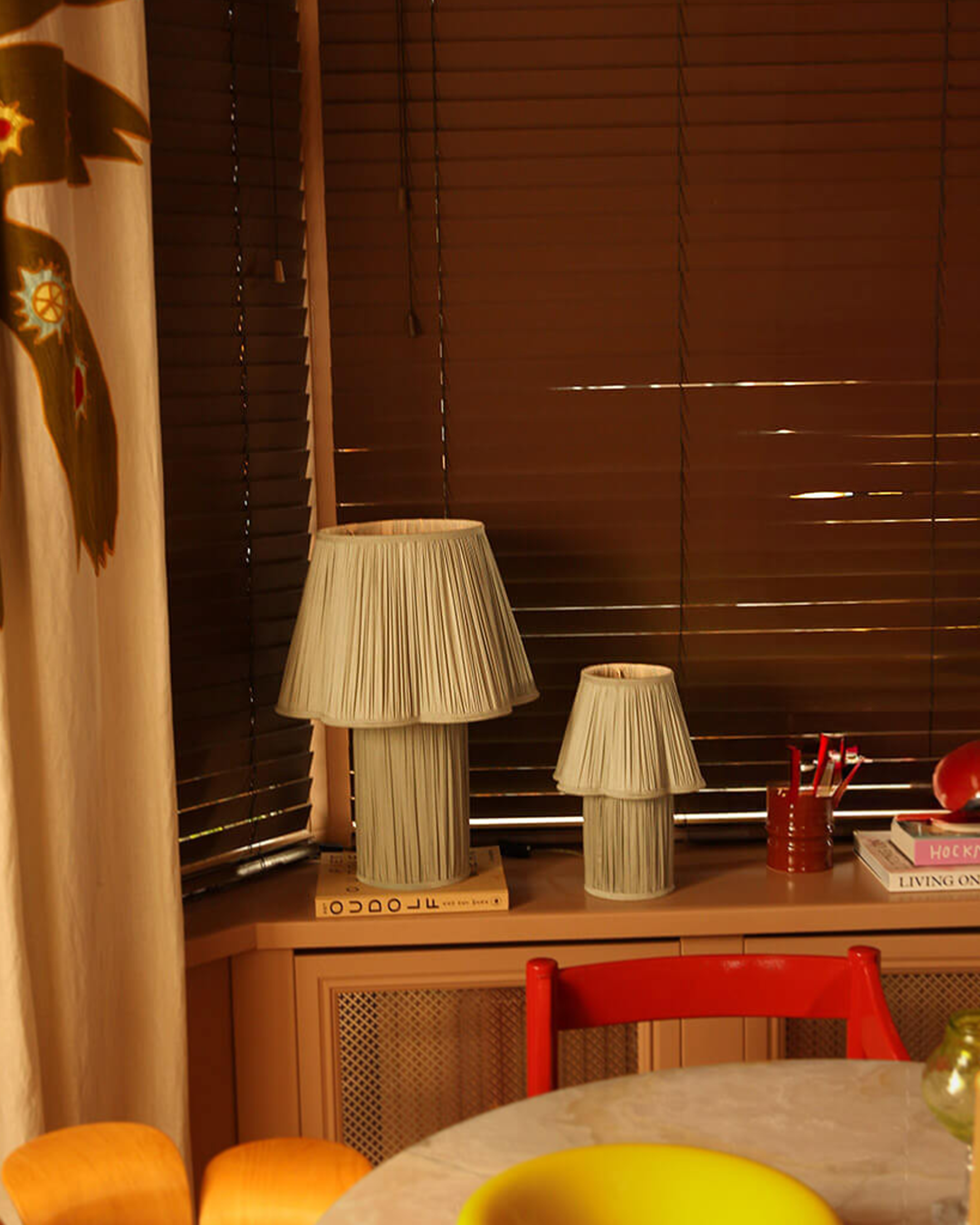 Myra Lamp Small Silk Sage z kolekcji Heart Lights to dekoracyjne oświetlenie, które wnosi energię koloru i atmosferę relaksu do codziennej przestrzeni. Plisowany abażur w intensywnym odcieniu fuksji przyciąga wzrok i buduje przytulny klimat sprzyjający wyciszeniu po długim dniu.