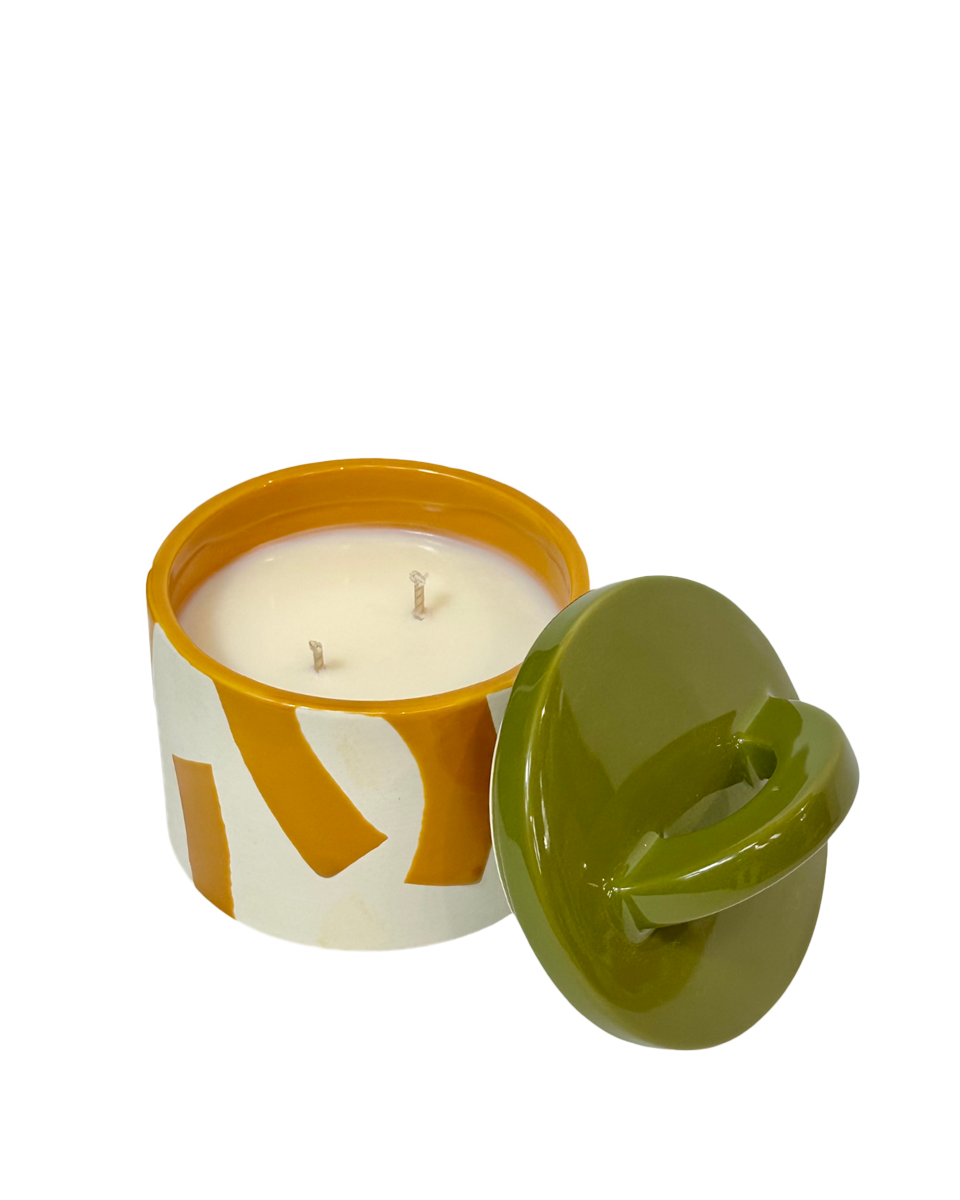 Świeca z naturalnego wosku sojowego, umieszczona we wzorzystym ceramicznym naczyniu, łączy pobudzenie zmysłów z wyjątkowym designem. Energetyzujący aromat pomelo i szałwii wypełnia przestrzeń świeżą, pobudzającą wonią, a naczynie z pokrywką w odcieniach pomarańczowym i zielonym wprowadza do wnętrza żywy, radosny akcent. Produkt oferuje 40–50 godzin czystego palenia, jest wolny od parabenów oraz cruelty-free, stanowiąc świetny wybór dla osób ceniących naturalne i etyczne rozwiązania. Po wypaleniu świeca zyskuje drugie życie: ceramiczny pojemnik doskonale sprawdzi się jako elegancka szkatułka lub dekoracyjny element. Ręcznie wylana w Wielkiej Brytanii i zapakowana w 100% recyklingowe, kolorowe opakowanie, idealnie nadaje się również na prezent. Odkryj całą kolekcję Pablo i stwórz własny zestaw, łącząc różne kolory i zapachy z tej wyjątkowej serii.
