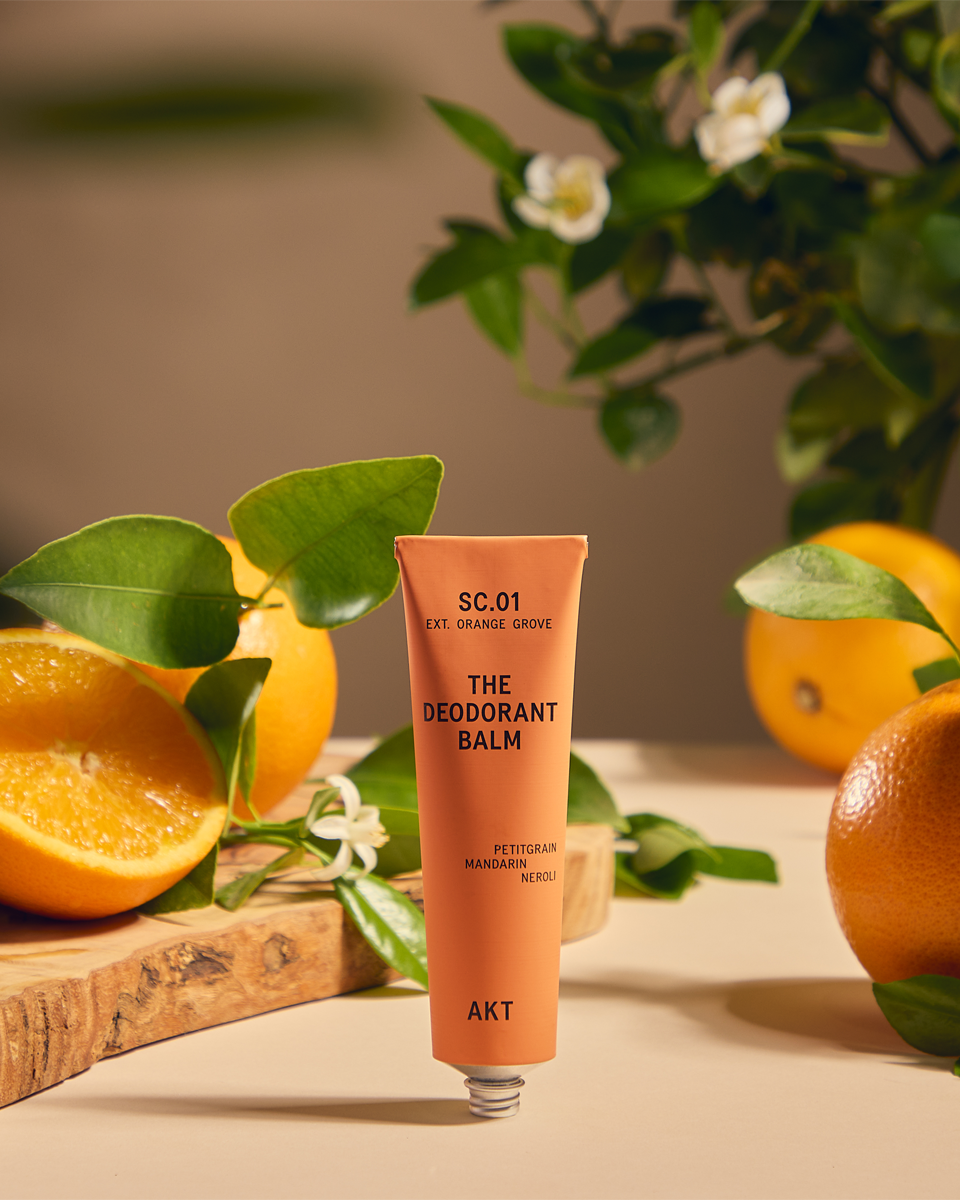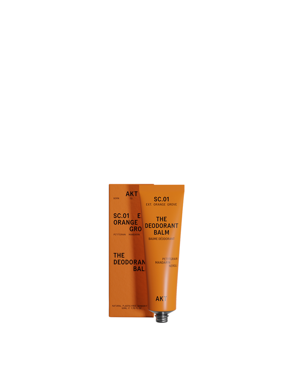 Dezodorant w kremie SC.01 Orange Grove łączy aromat olejku petitgrain, mandarynki i neroli. Idealny dla osób, które szukają skutecznej, a jednocześnie łagodnej ochrony bez sztucznych zapachów. Dezodorant w balsamie AKT to produkt wielozadaniowy, który dopasowuje się do Twoich potrzeb, niezależnie od rodzaju aktywności.