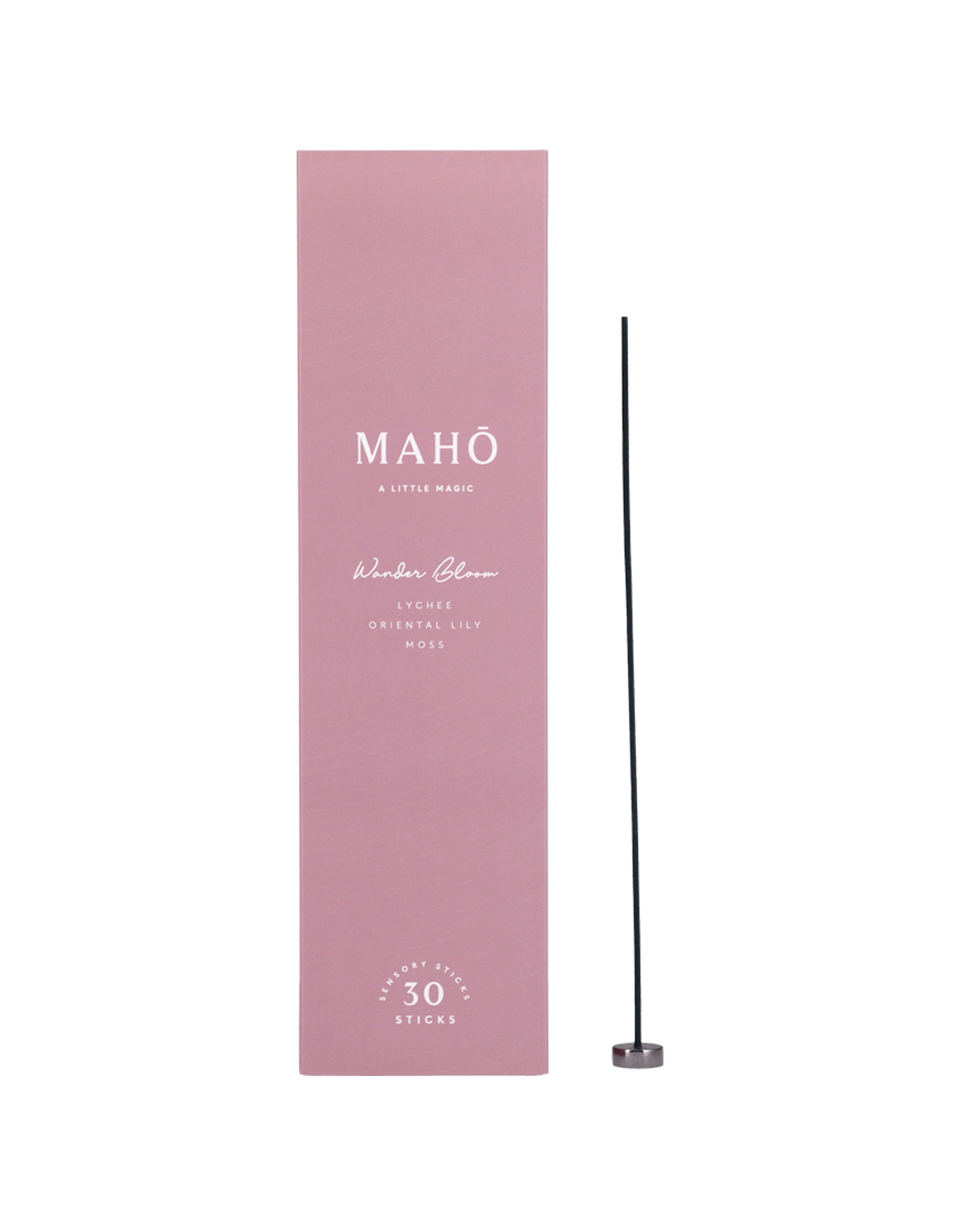 Kadzidełka zapachowe MAHŌ Wander Bloom budzą zmysły egzotyczną świeżością liczi i delikatnością dopiero co rozwiniętych kwiatów. To kompozycja lekka i pełna życia – unosi się w ciepłym, letnim powietrzu niczym subtelna mgła, niosąc naturalną radość i harmonię. Naturalna, aromatyczna żywica została połączona z wyrafinowaną mieszanką luksusowych perfum, by po zapaleniu wypełniać przestrzeń miękkim, kwiatowo-owocowym aromatem.