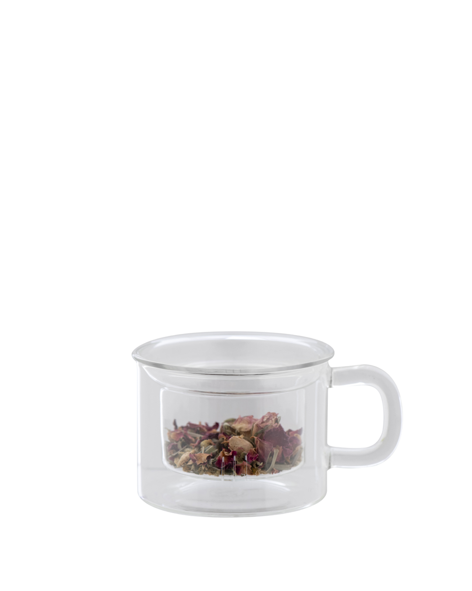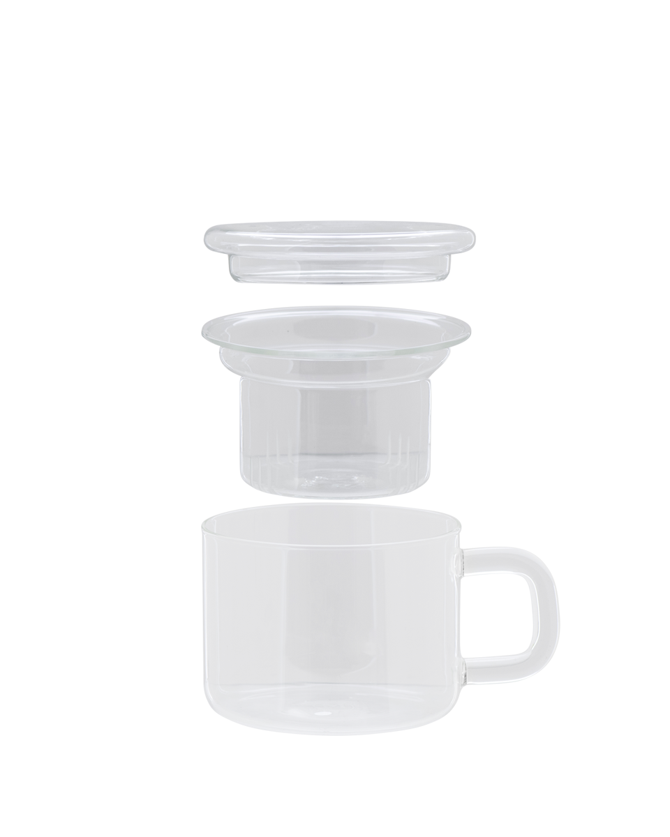 Kubek jest odporny na wysokie i niskie temperatury, a lekkie szkło pozostaje trwałe oraz bezpieczne w użytkowaniu. Funkcjonalny zaparzacz pozwala wydobyć pełnię smaku i aromatu liści. Pokrywka pełni także rolę spodka: po zaparzeniu wystarczy ją odwrócić i odłożyć na niej infuzer.