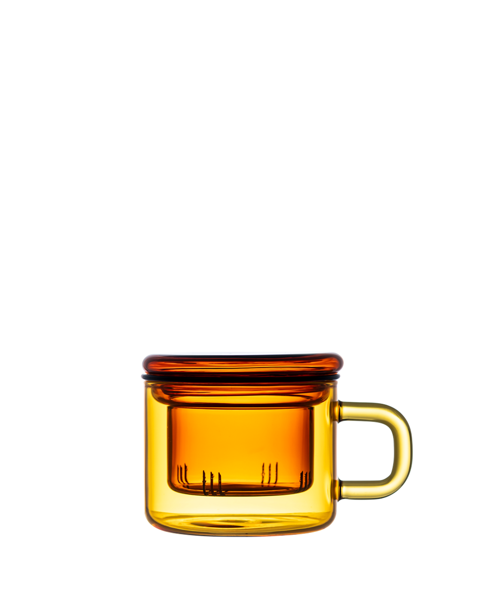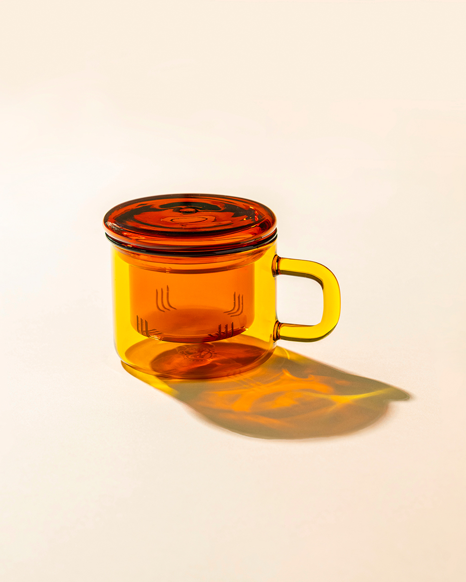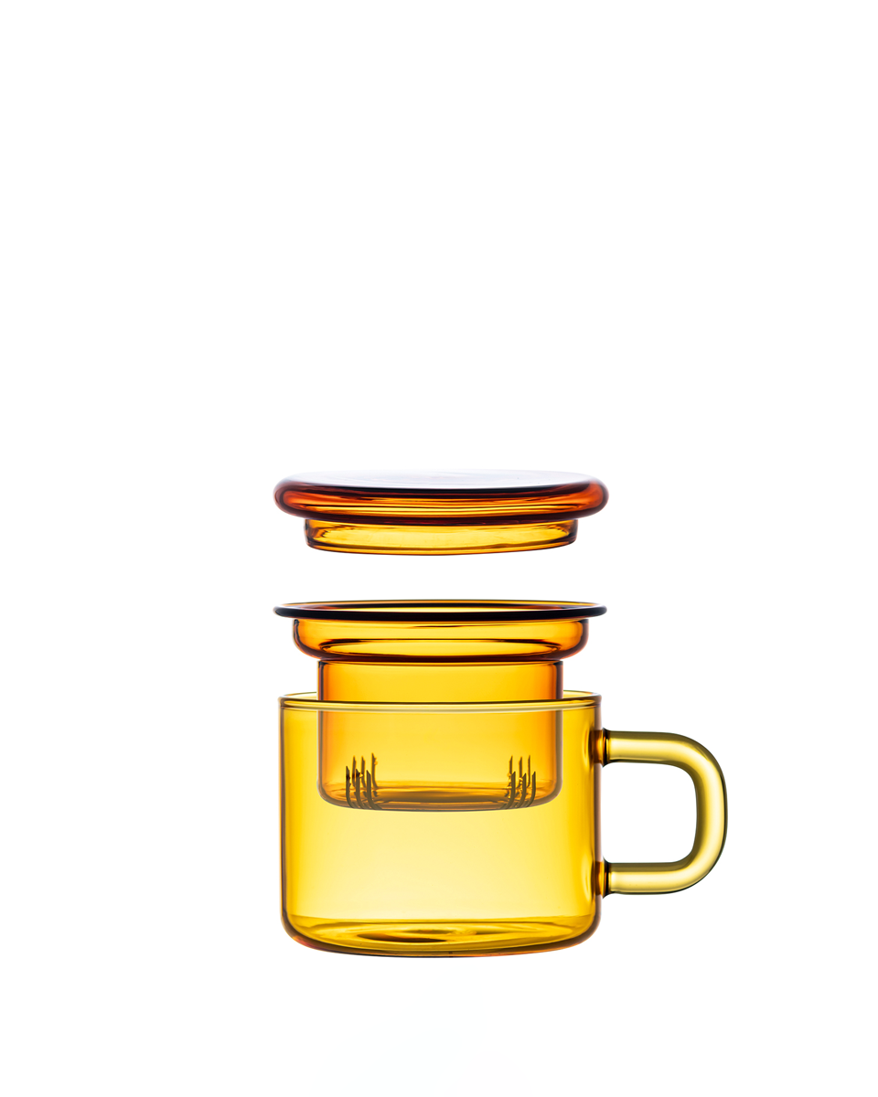 Kubek jest odporny na wysokie i niskie temperatury, a lekkie szkło pozostaje trwałe oraz bezpieczne w użytkowaniu. Kolor barwiony w masie szkła jest integralną częścią materiału — nie ściera się, nie blaknie i nie przenika do napojów. Funkcjonalny zaparzacz pozwala wydobyć pełnię smaku i aromatu liści. Pokrywka pełni także rolę spodka: po zaparzeniu wystarczy ją odwrócić i odłożyć na niej infuzer.