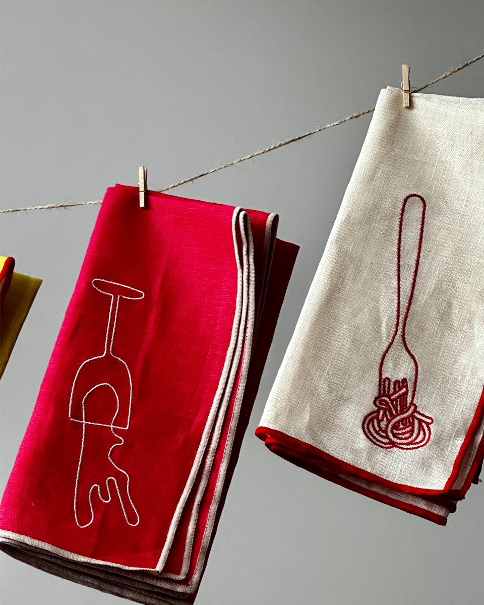 Serwetki lniane z haftem - Wine - 2 szt.