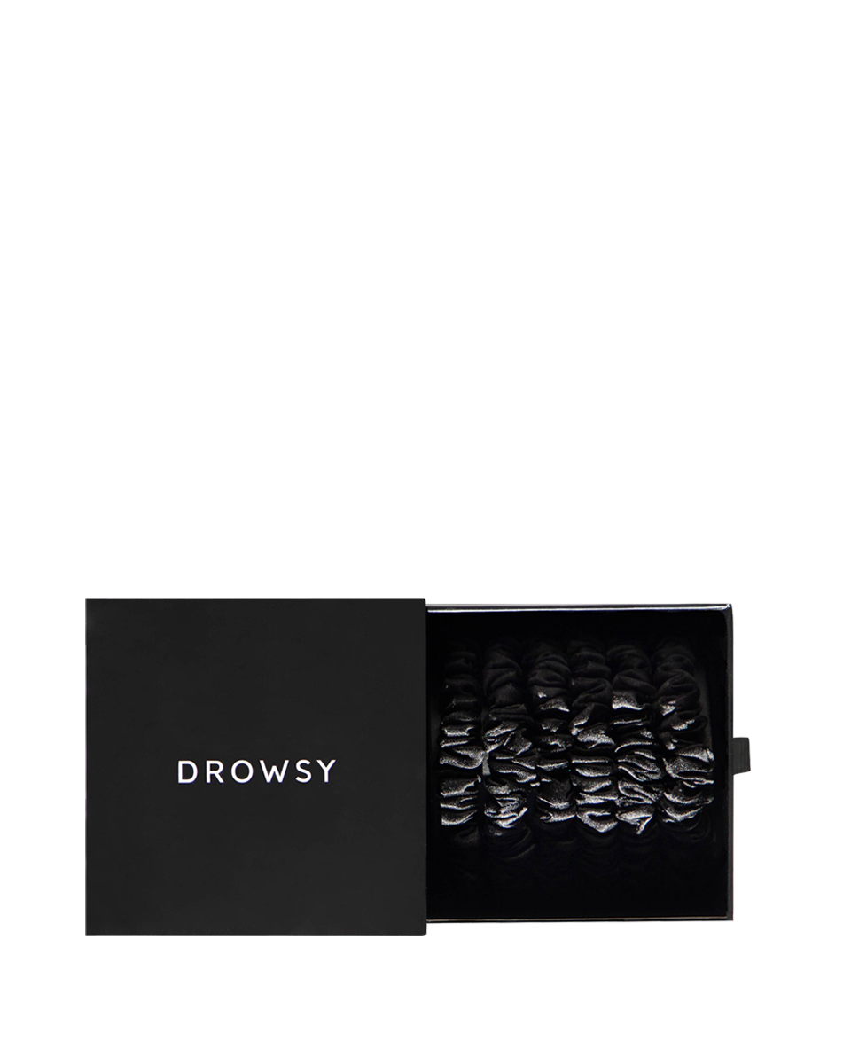 Zestaw 6 jedwabnych gumek scrunchie – Black Jade